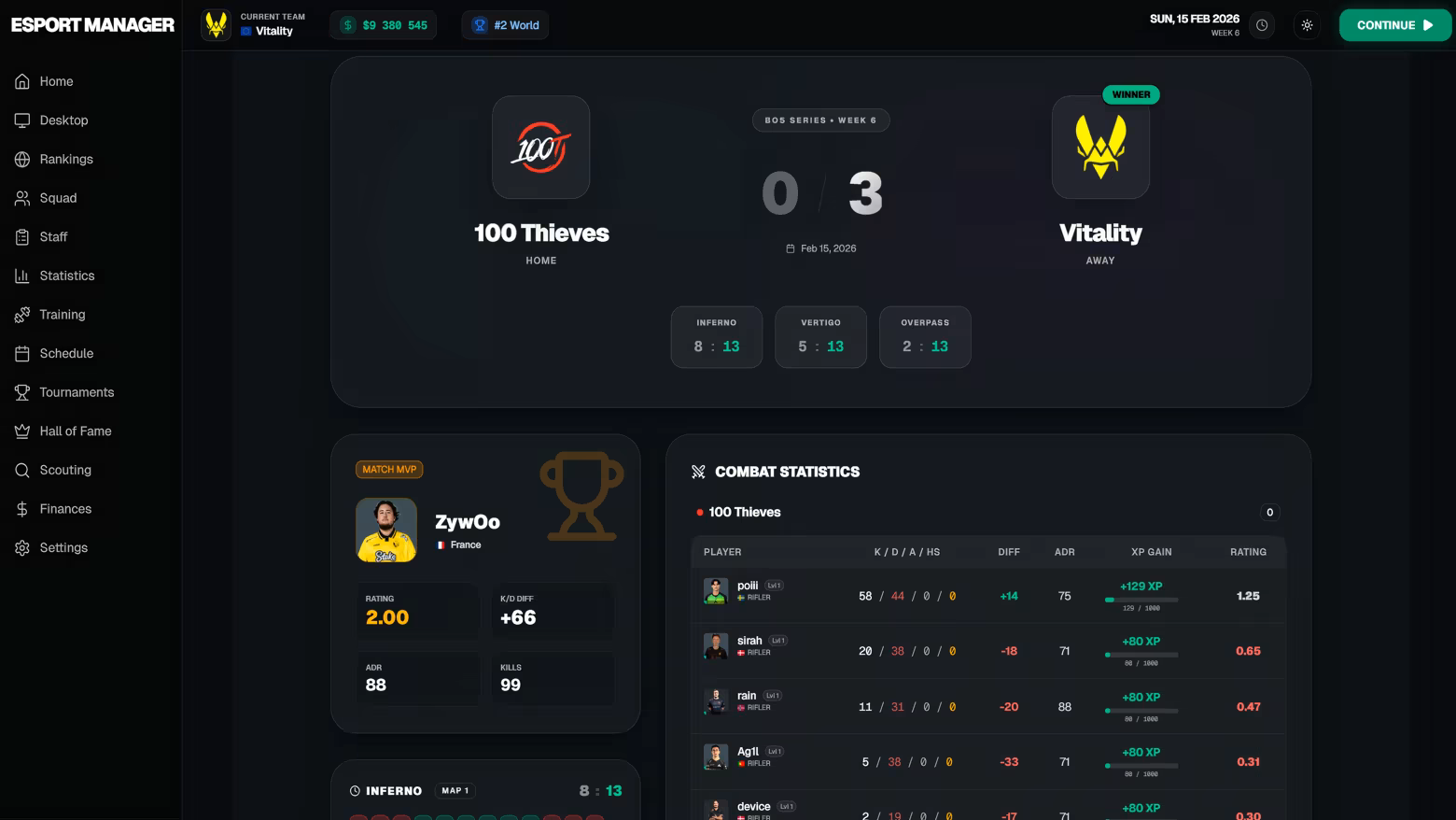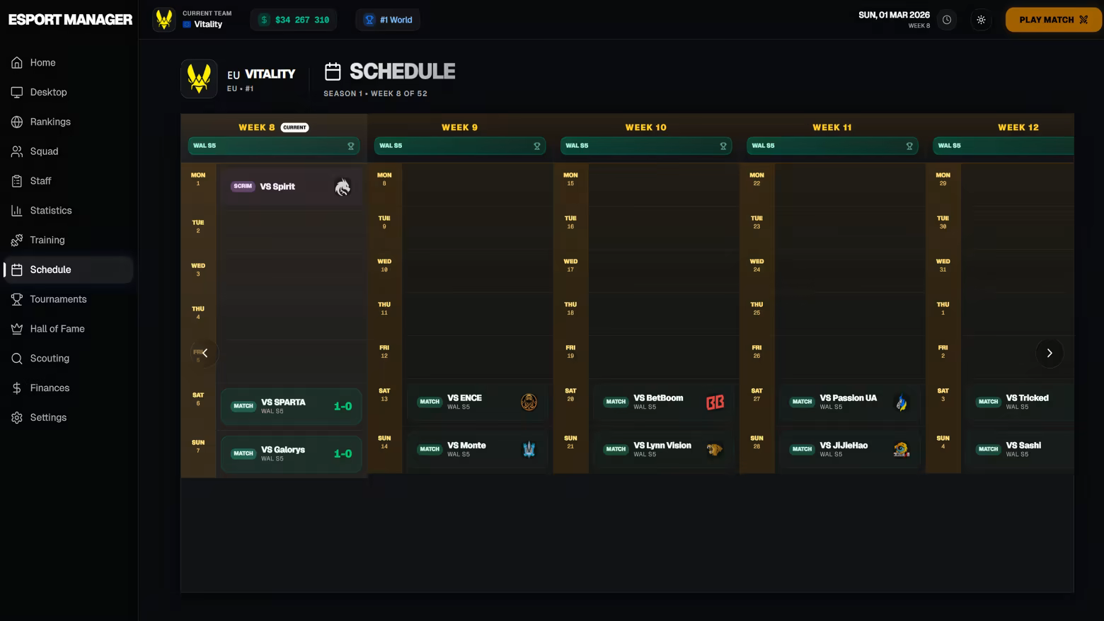 Deep FPS esports management simulation