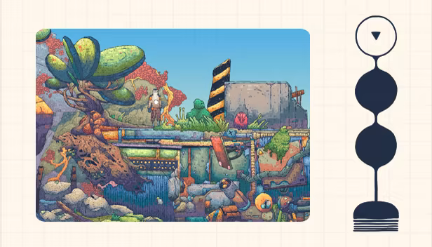 HEAVYDELIC is a hand-drawn 2D Slavic Synthpunk Platformer set in a world where industrial collapse triggered an uninvited evolution. Developed entirely by one artist, Eniac, where every asset is manually hand-drawn, like output from a system that never went digital.