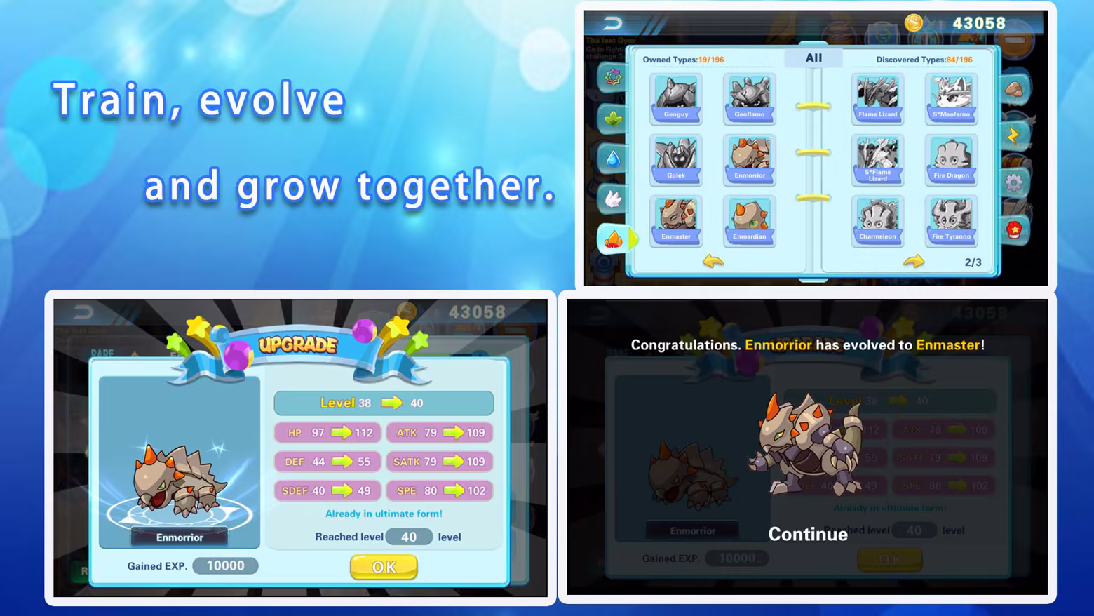 Train your monsters, unlock new skills, and witness their transformations. Every tamer's journey is unique.
