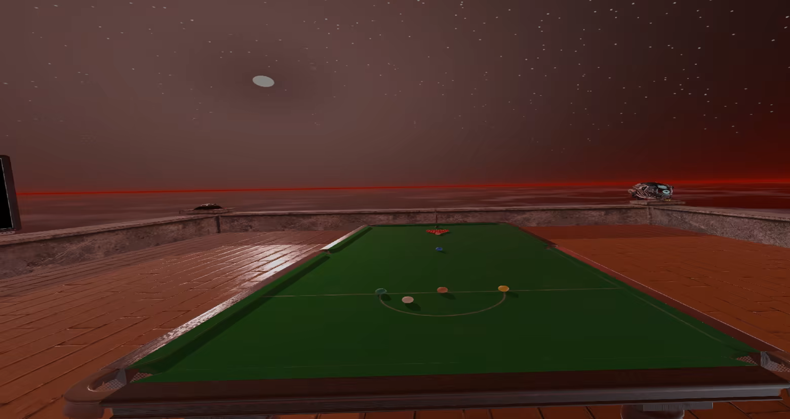The experience of being in this environment only appears in your dreams. You can see the stars, float above the clouds, and play snooker in the sky. This place doesn't seem like Earth, yet it possesses almost the same gravity and material properties. You can gaze into the distance and relax your eyes. At the same time, the familiar snooker table, balls, and cue beckon you to give it a try!